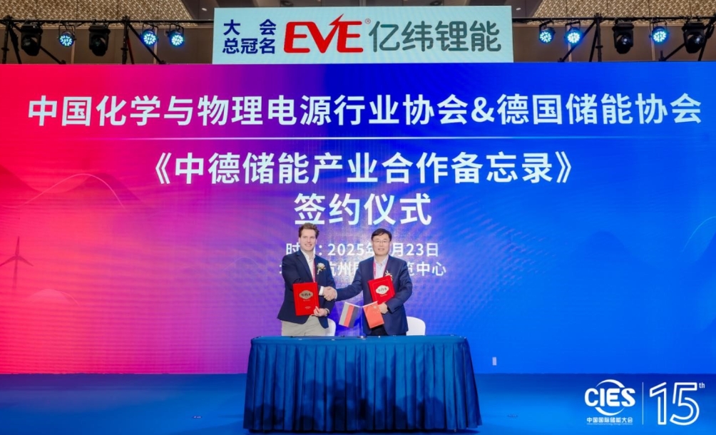 2025年3月,經(jīng)中國化學(xué)與物理電源行業(yè)協(xié)會(huì)和德國儲(chǔ)能協(xié)會(huì)充分協(xié)商,雙方協(xié)會(huì)就中德儲(chǔ)能產(chǎn)業(yè)全球化影響力和國際合作達(dá)成共識,雙方以此次大會(huì)召開為契機(jī),共同簽訂《中德儲(chǔ)能產(chǎn)業(yè)合作諒解備忘錄》,積極推進(jìn)中德儲(chǔ)能產(chǎn)業(yè)務(wù)實(shí)合作及全球化渠道資源建設(shè)。