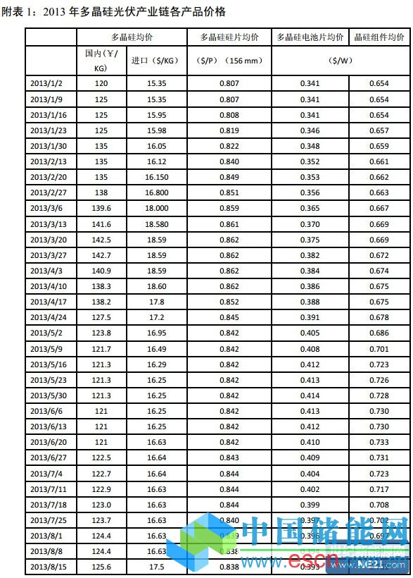 附表1:2013 年多晶硅光伏產(chǎn)業(yè)鏈各產(chǎn)品價(jià)格 ....................... 12