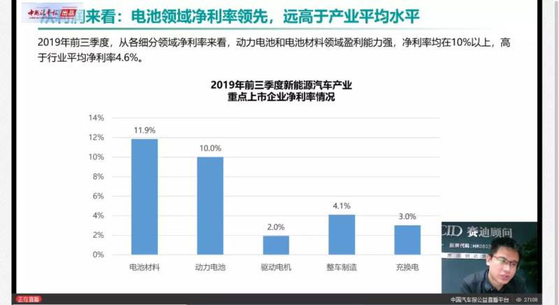 那么,今年投資者該如何選擇呢?在剖析去年前三季度各企業(yè)的財(cái)務(wù)情況后,鹿文亮發(fā)現(xiàn),從各細(xì)分領(lǐng)域營收和利潤情況來看,中游整車制造環(huán)節(jié)收入貢獻(xiàn)度最高,比重高達(dá)71.1%,其次為動(dòng)力電池領(lǐng)域和充換電領(lǐng)域,收入比重分別為17.9%和5.7%。值得注意的是,動(dòng)力電池和電池材料領(lǐng)域盈利能力較強(qiáng),凈利率均在10%以上,比行業(yè)平均凈利率高4.6%。