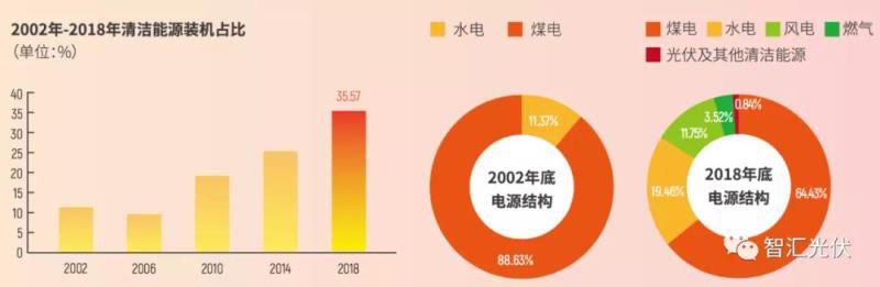 截至 2018 年底,華能集團總裝機容量達 17657萬kW,其中低碳清潔能源裝機容量 5858萬kW,占比 33.18%;非水可再生能源裝機容量 2181萬kW,占比 12.35%。