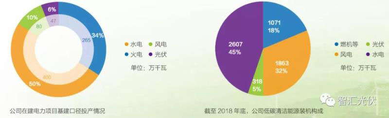圖:截止2018年底,華能集團在建項目情況及清潔能源電力構成