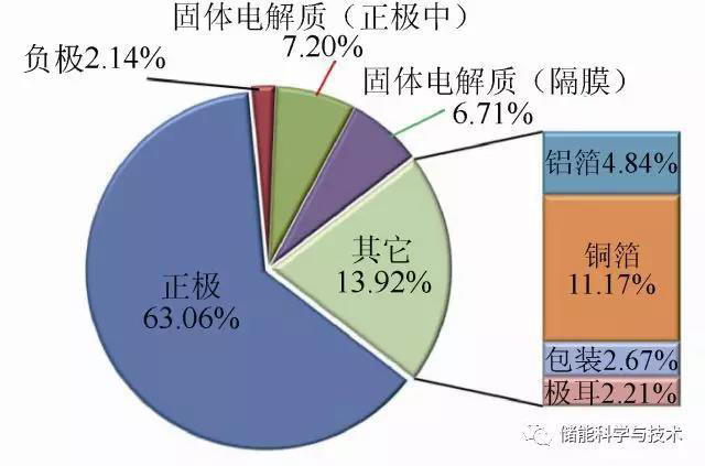 圖3展示了能量密度達(dá)到297 W·h/kg的鋰離子電池軟包電芯的各物質(zhì)占比,液態(tài)電解質(zhì)總共占比16%(質(zhì)量分?jǐn)?shù))。