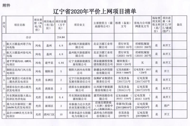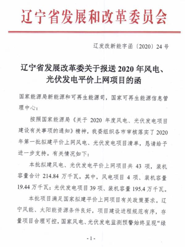 近期,遼寧省上報(bào)2020年風(fēng)電、光伏發(fā)電平價(jià)上網(wǎng)項(xiàng)目名單,包括43個(gè)項(xiàng)目共計(jì)2.1484GW。其中,光伏發(fā)電項(xiàng)目39項(xiàng)、裝機(jī)容量1.955GW;風(fēng)電項(xiàng)目4項(xiàng)、裝機(jī)容量194.4MW。