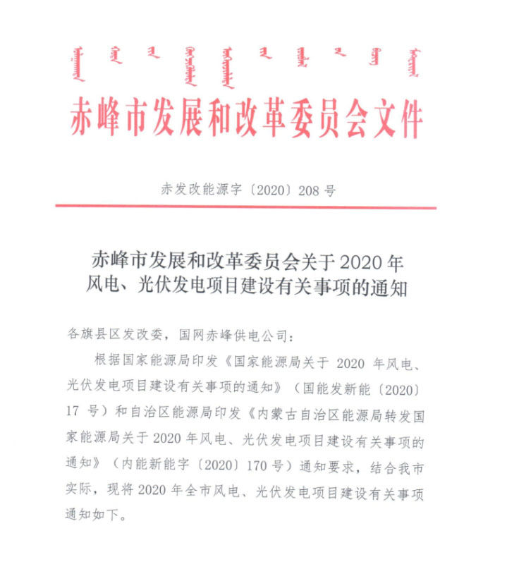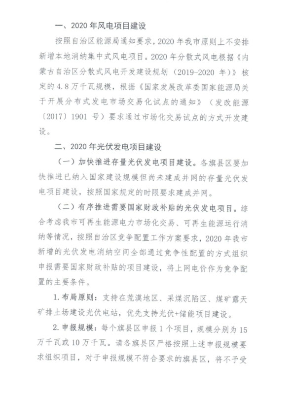 風(fēng)電方面,2020年赤峰市原則上不安排新增本地消納集中式風(fēng)電項目。