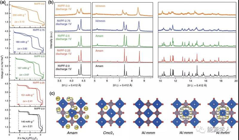 圖4 鈉含量對于Na3V2(PO4)2F3的電化學過程和性能的影響