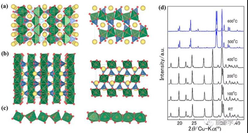 圖2 不同晶相的NaFePO4的晶體結(jié)構(gòu)和熱穩(wěn)定性