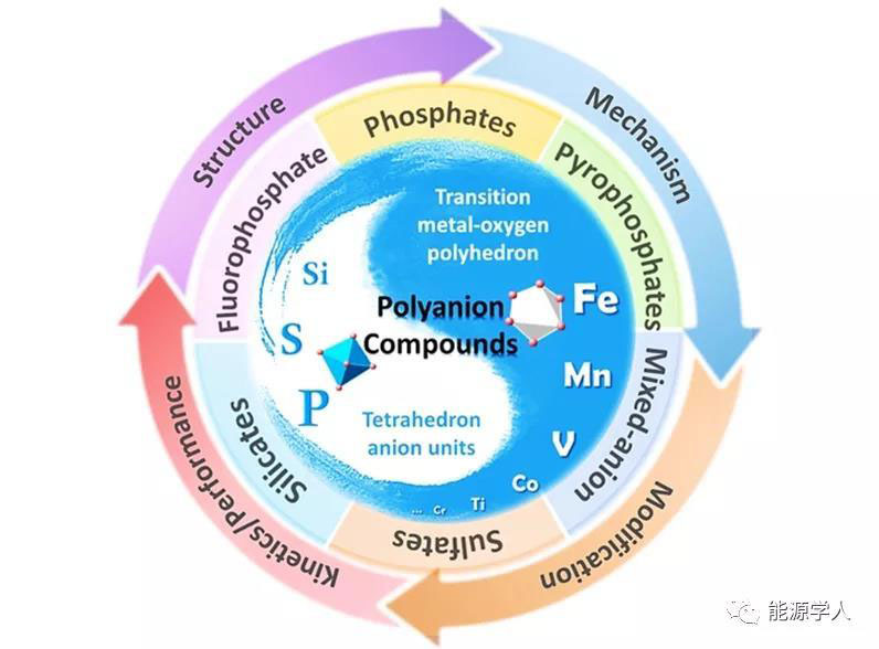 作為繼鋰離子電池之后的一大代表性電池體系,鈉離子電池由于資源豐富、成本低廉等優(yōu)點在智能電網(wǎng)、低速電動車等大規(guī)模能量儲存和轉(zhuǎn)化領域極具發(fā)展優(yōu)勢。正極材料決定著電池的能量密度。聚陰離子型化合物具有穩(wěn)定的三維骨架結(jié)構(gòu),較高的工作電壓,良好的安全性,因此成為鈉離子電池中的一類代表性正極材料。然而,聚陰離子型化合物的電子電導率較低,限制了電池的比容量和倍率性能。近日,南開大學焦麗芳教授團隊在Chemical Society Reviews上發(fā)表綜述文章(期刊背封面),該文章系統(tǒng)全面的討論了磷酸鹽、氟化磷酸鹽、焦磷酸鹽、混合磷酸鹽、硫酸鹽、硅酸鹽等類型鈉離子電池聚陰離子型正極材料的研究進展和面臨的挑戰(zhàn),并對近幾年的一些新型表征手段所取得的研究進展進行了著重介紹,同時探討了此類材料未來的發(fā)展方向,提出了解決鈉離子電池聚陰離子型正極材料關(guān)鍵問題的思路。