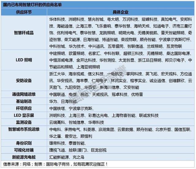四、智慧燈桿供應(yīng)鏈企業(yè)盤(pán)點(diǎn)