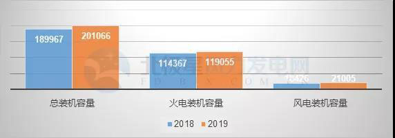 圖1:2018-2019全國電力裝機對比圖(單位:萬千瓦)