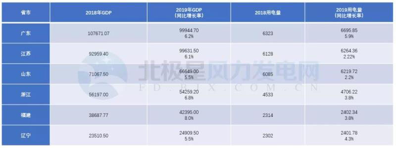 表1:2018-2019海上風電發(fā)展大省的GDP和用電量對比