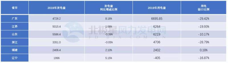 表2:2018-2019海上風電發(fā)展大省的發(fā)電量和用電量對比