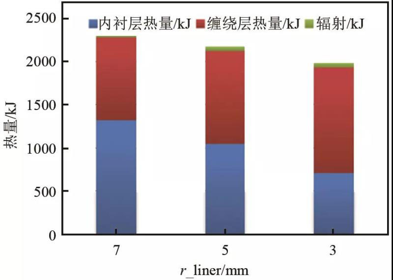 圖4 內(nèi)襯層厚度對(duì)儲(chǔ)氫瓶?jī)?nèi)氫氣散熱量的影響