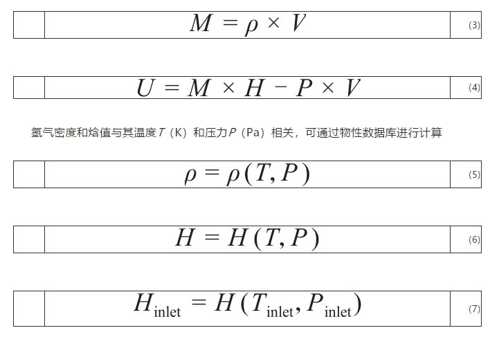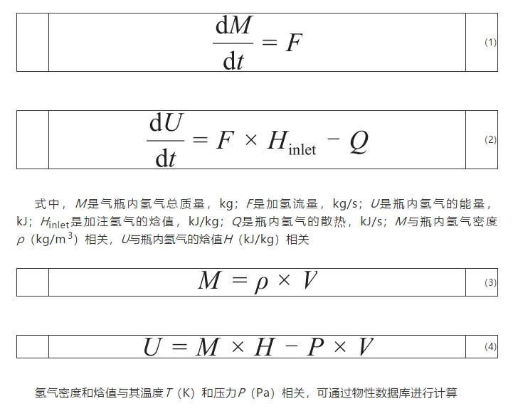 采用0維氫氣模型和1維儲(chǔ)氫瓶壁面模型對(duì)加氫過(guò)程進(jìn)行建模。對(duì)儲(chǔ)氫瓶?jī)?nèi)氫氣進(jìn)行質(zhì)量與能量衡算,存在如下關(guān)系方程