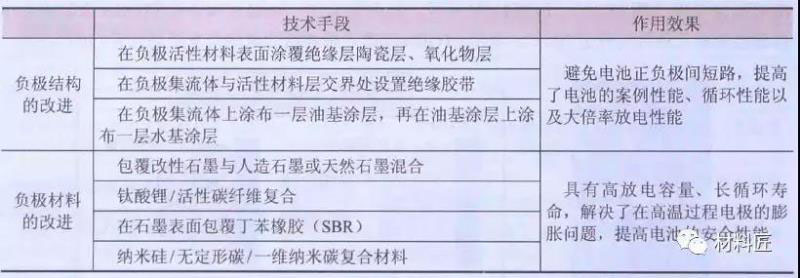 文獻(xiàn)通過對(duì)專利的分析也認(rèn)為解決碳負(fù)極材料安全性的方法主要有降低負(fù)極材料的比表面積、提高SEI膜的熱穩(wěn)定性。在現(xiàn)有的國(guó)內(nèi)專利申請(qǐng)中,改進(jìn)負(fù)極材料及結(jié)構(gòu)進(jìn)而提高電池安全性能的相關(guān)技術(shù)。