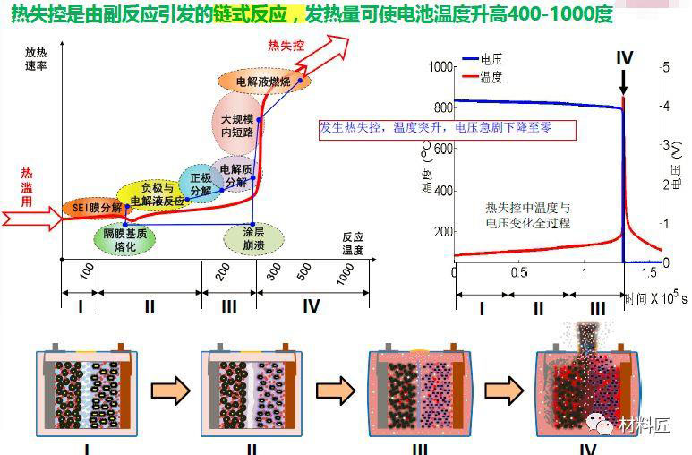 電池?zé)崾Э囟际怯捎陔姵氐纳鸁崴俾蔬h(yuǎn)高于散熱速率,且熱量大量累積而未及時(shí)散發(fā)出去所引起的。從本質(zhì)上而言,“熱失控”是一個(gè)能量正反饋循環(huán)過程:升高的溫度會(huì)導(dǎo)致系統(tǒng)變熱,系統(tǒng)變熱后溫度升高,又反過來讓系統(tǒng)變得更熱。不嚴(yán)格的劃分,電池?zé)崾Э乜梢苑譃槿齻€(gè)階段: