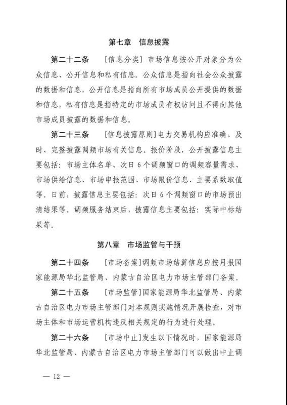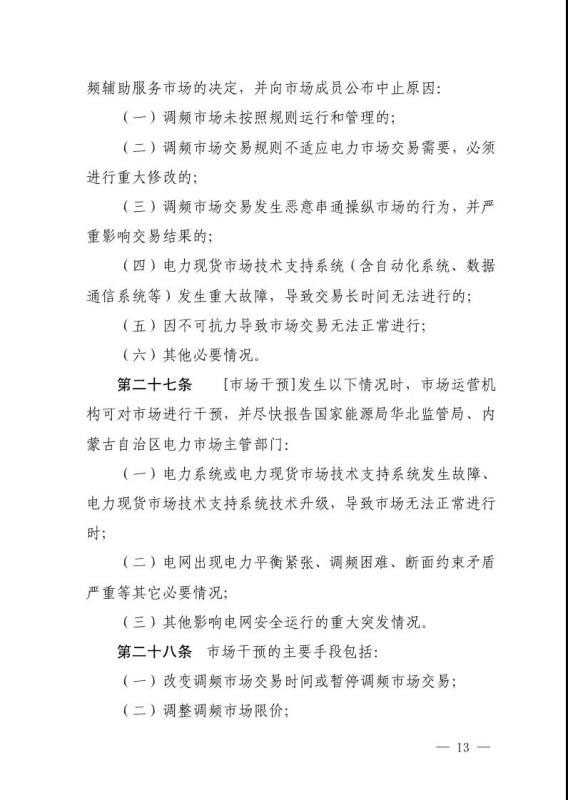 華北能源監(jiān)管局關(guān)于征求蒙西電力市場調(diào)頻和備用輔助服務交易實施細則意見的函