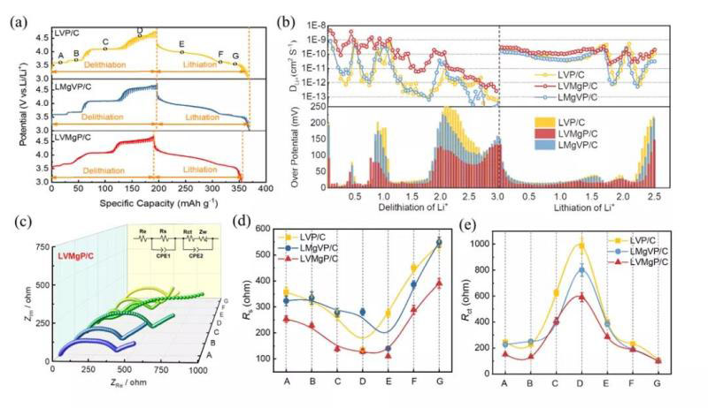 圖5 Mg摻雜磷酸釩鋰在充放電過程的動力學(xué)特性