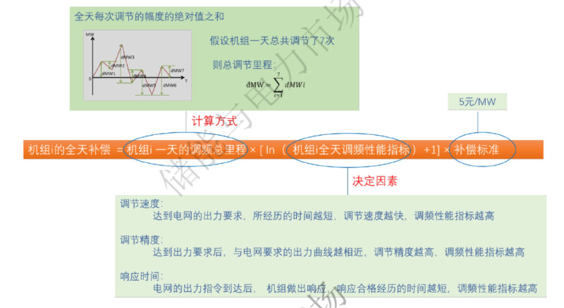 機組一天可獲得補償由調(diào)節(jié)總里程、機組性能指標(biāo)、補償標(biāo)準(zhǔn)決定。