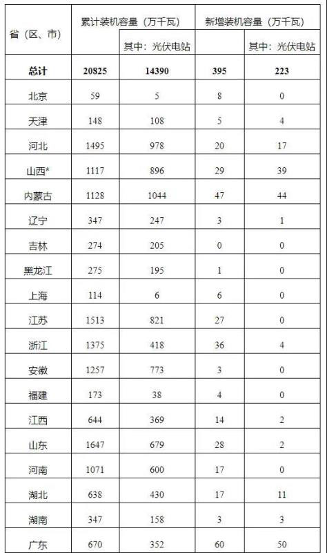 2020年一季度光伏發(fā)電并網(wǎng)運(yùn)行統(tǒng)計(jì)數(shù)據(jù)