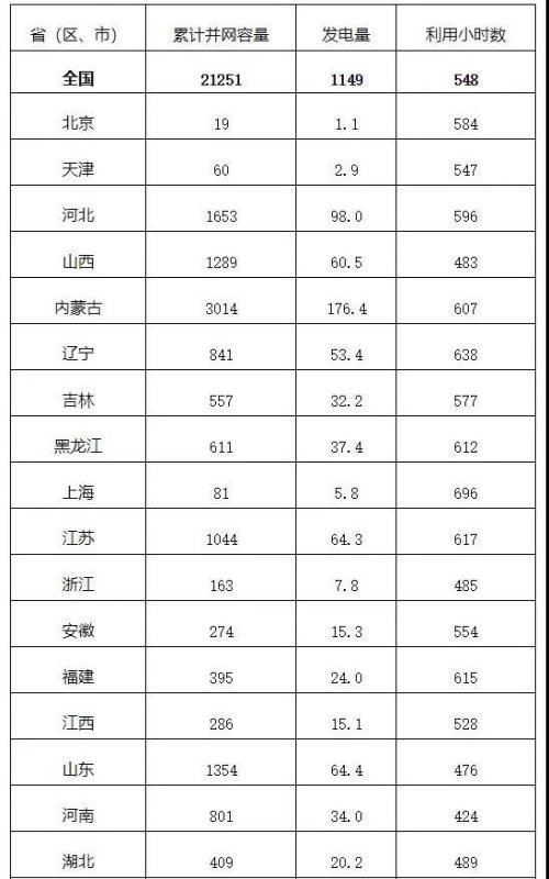 2020年一季度風(fēng)電并網(wǎng)運(yùn)行統(tǒng)計(jì)數(shù)據(jù)