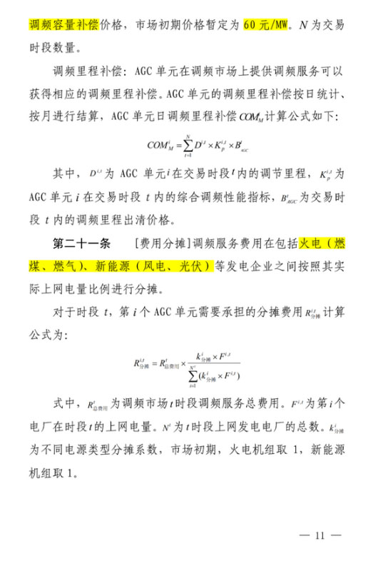 調(diào)頻服務(wù)費(fèi)用在包括火電(燃煤、燃?xì)猓?、新能源(風(fēng)電、光伏)等發(fā)電企業(yè)之間按照其實(shí)際上網(wǎng)電量比例進(jìn)行分?jǐn)偂?