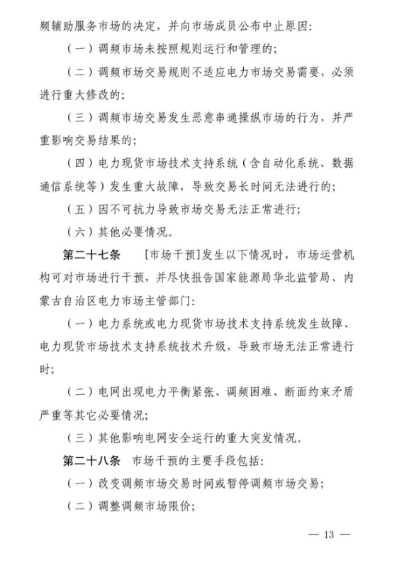 近日,華北能監(jiān)局發(fā)布《蒙西電力市場(chǎng)調(diào)頻和備用輔助服務(wù)交易實(shí)施細(xì)則征求意見稿》。