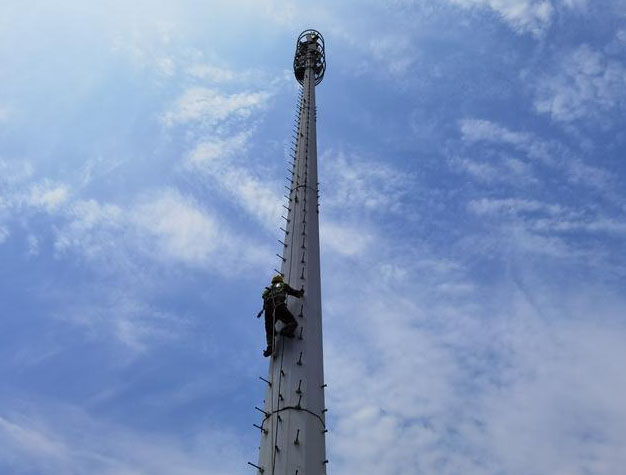 “今天這個(gè)基站周邊比較平整,算是比較好作業(yè)的了?!饼忀x和工友要安裝設(shè)備的鐵塔有45米高,旁邊就是機(jī)房。塔工綁好安全繩,便開(kāi)始往塔頂攀爬,不到3分鐘就爬上去了。在塔頂,塔工要搭建好滑輪,然后通過(guò)牽引繩把3個(gè)設(shè)備拉上去。