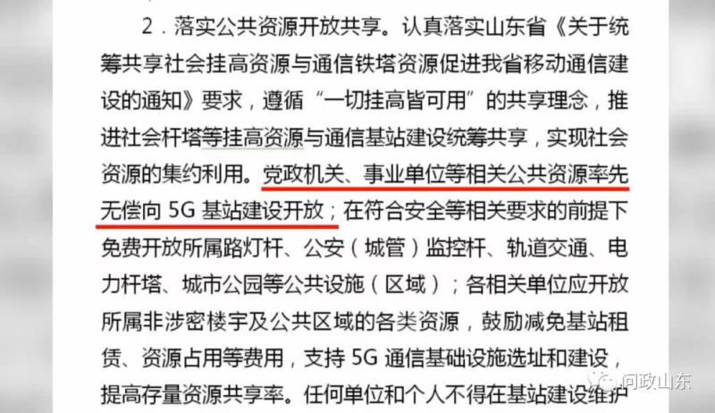 記者從《煙臺市關(guān)于加快5G產(chǎn)業(yè)發(fā)展的實(shí)施意見》征求意見的函中看到:“黨政機(jī)關(guān)、事業(yè)單位等相關(guān)公共資源率先無償向5G基站建設(shè)開放”。記者將這一情況反映給了煙臺市工信局牽頭成立的5G網(wǎng)絡(luò)建設(shè)和應(yīng)用推進(jìn)工作領(lǐng)導(dǎo)小組。