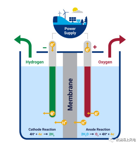 除了上面說的制氫工藝,氫氣也可以通過電解水(使用電流將水分解為氫和氧)來產(chǎn)生。任何資源生產(chǎn)的電力都能用來電解水制氫氣,如果此時使用的電能是由可再生能源(例如太陽能或風(fēng)電)產(chǎn)生的,在生產(chǎn)過程中將基本上不會產(chǎn)生溫室氣體,因此我們把這種方式生成的氫氣叫“綠色氫氣”。可再生能源電解制氫過程示意圖如下.