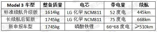 根據(jù)磷酸鐵鋰版本Model 3增加的重量,有媒體推測(cè)其帶電量為68度電左右,續(xù)航里程將超過510km。