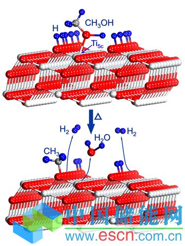 甲醇能夠提高二氧化鈦光催化分解水的產(chǎn)氫效率,同時甲醇本身也能光催化產(chǎn)氫。目前普遍認為anatase表面的光催化產(chǎn)氫效率要高于rutile表面,但是產(chǎn)氫反應的機理仍不是十分清晰。如果能從分子水平上理解二氧化鈦不同表面的產(chǎn)氫機理,能為發(fā)展高效催化劑提供新的思路。