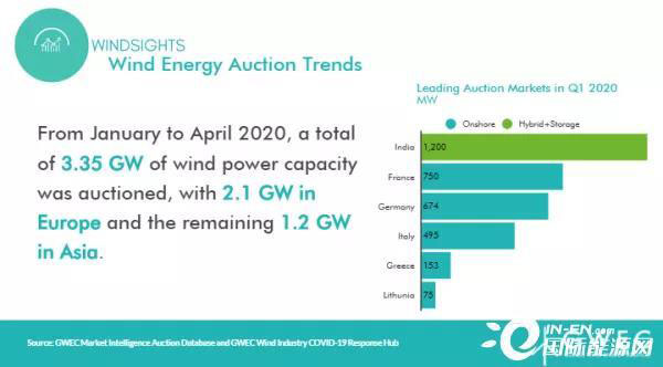 在歐洲,法國(guó)舉行了第五輪可再生能源項(xiàng)目招標(biāo),涉及1.7GW可再生能源項(xiàng)目(750MW風(fēng)電項(xiàng)目)。由于新冠肺炎疫情的影響,原定于7月進(jìn)行的下一輪招標(biāo)將推遲到11月;在意大利,根據(jù)該國(guó)可再生能源招標(biāo)計(jì)劃,今年2月舉行了第一次招標(biāo),共分配495MW風(fēng)電裝機(jī)量;德國(guó)舉辦了兩輪可再生能源招標(biāo),但兩場(chǎng)陸上風(fēng)電招標(biāo)均未獲充分認(rèn)購(gòu),僅分配671MW風(fēng)電裝機(jī)量。