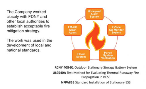 為了確保紐約州運(yùn)營(yíng)和部署的儲(chǔ)能系統(tǒng)消防安全,Kamaludeen指出了愛(ài)迪生聯(lián)合電氣公司采取的5個(gè)措施和方法。其中包括使用霍尼韋爾警報(bào)系統(tǒng)、一氧化碳監(jiān)測(cè)系統(tǒng)、凈化系統(tǒng)通風(fēng)、溢流系統(tǒng)和FM-200清潔劑。這些方法已經(jīng)應(yīng)用在該公司位于紐約市皇后區(qū)部署裝機(jī)容量為2MW儲(chǔ)能系統(tǒng)中。他重申,在紐約州這樣人口密集的城市地區(qū),業(yè)界人士對(duì)儲(chǔ)能系統(tǒng)消防安全的關(guān)注變得更加突出。