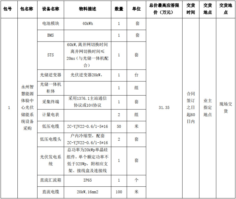 2.1 項(xiàng)目名稱(chēng):國(guó)網(wǎng)湖南綜合能源服務(wù)有限公司永州智慧能源體驗(yàn)中心光伏儲(chǔ)能系統(tǒng)設(shè)備采購(gòu)--公開(kāi)競(jìng)爭(zhēng)性談判