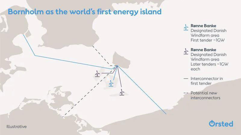 其中一個(gè)能源島將位于波羅的海的丹麥博爾霍姆島(Bornholm),有望與波蘭聯(lián)網(wǎng)。另一個(gè)能源島將建在北海的一個(gè)人工島上,可能與荷蘭聯(lián)網(wǎng)。丹麥表示將與荷蘭、波蘭展開協(xié)商,把能源島與這兩個(gè)國(guó)家連接起來(lái)。未來(lái)5到7年,這兩個(gè)島嶼的海上風(fēng)力發(fā)電能力有可能擴(kuò)大到4-吉兆瓦。從長(zhǎng)遠(yuǎn)來(lái)看,這些島嶼產(chǎn)生的多余電力可以轉(zhuǎn)化為綠色氫氣,并加工成飛機(jī)、卡車、輪船和供熱用的燃料。