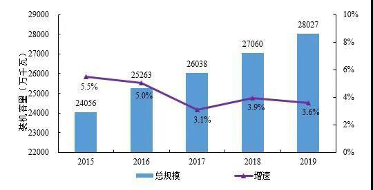 圖示1 2015-2019年南方區(qū)域主力調(diào)節(jié)電源裝機(jī)增長(zhǎng)情況
