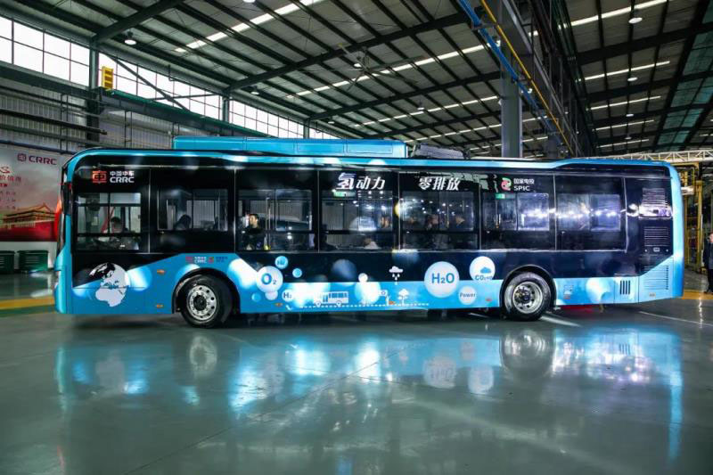 △國家電投與中國中車聯(lián)合研發(fā)的氫燃料電池城市客車。