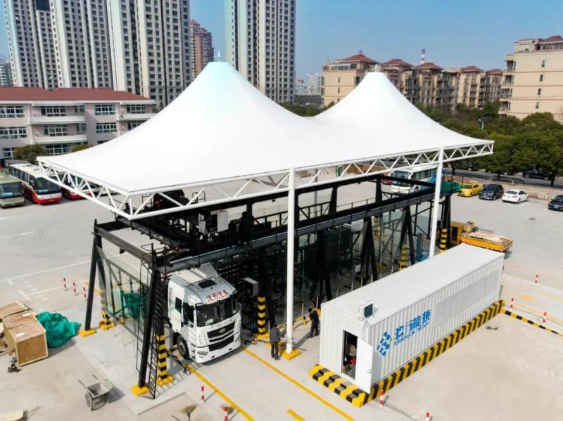 充電版行不通,融和租賃公司轉(zhuǎn)變思路,2019年,他們做出了全球首款換電式純電動(dòng)重型牽引車(以下簡稱“換電重卡”)。換電重卡就是由過去給電池充電干脆變成更換電池。這家公司很快將換電重卡又拉到了密云的礦山里,還建設(shè)了換電站,司機(jī)把車開進(jìn)站點(diǎn),三分鐘便可更換好電池,甚至比加油還快。