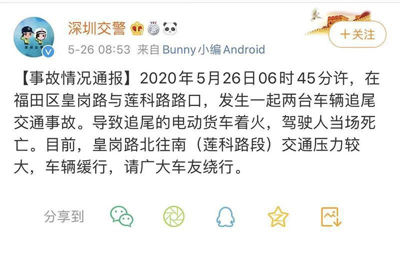 視頻中還有圍觀群眾說(shuō)到,“車(chē)上還有個(gè)人啊,這個(gè)人要被燒死了?!?時(shí)53分,深圳交警在微博上回應(yīng)證實(shí)了駕駛員死亡的事實(shí)。