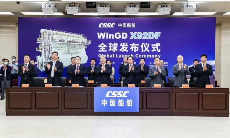 5月26日,由中國(guó)船舶旗下溫特圖爾發(fā)動(dòng)機(jī)有限公司(WinGD)自主研發(fā),上海中船三井造船柴油機(jī)有限公司建造,中船海洋動(dòng)力技術(shù)服務(wù)有限公司保障的目前世界最大船用雙燃料低速機(jī)WinGD X92DF正式向全球發(fā)布。中國(guó)船舶集團(tuán)董事長(zhǎng)雷凡培出席發(fā)布儀式并講話(huà),總經(jīng)理?xiàng)罱鸪芍鞒謨x式。國(guó)家相關(guān)部委、地方政府、船級(jí)社、航運(yùn)公司、造船公司等有關(guān)領(lǐng)導(dǎo)和專(zhuān)家,中國(guó)船舶集團(tuán)副總經(jīng)理馮永強(qiáng)、孫偉、杜剛出席發(fā)布儀式。