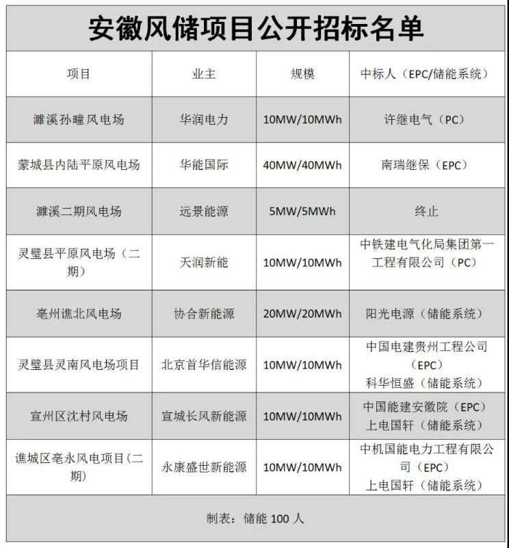 根據(jù)公開(kāi)資料,目前安徽省境內(nèi)已經(jīng)有8個(gè)風(fēng)儲(chǔ)項(xiàng)目公布招標(biāo),其中遠(yuǎn)景能源項(xiàng)目已經(jīng)終止。