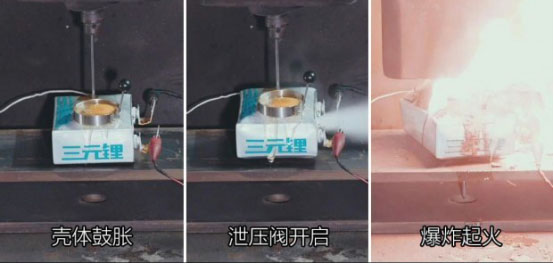此外,迅速攀升的電池內(nèi)部壓力很快會(huì)推開泄壓閥,內(nèi)部高壓電解液噴薄而出,外部空氣此時(shí)進(jìn)入到電池內(nèi)部,空氣+極高的溫度+殘留在電池內(nèi)部的可燃電解液,爆炸起火就會(huì)一觸即發(fā)。