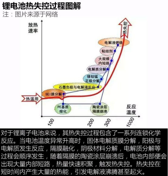 發(fā)生內(nèi)部短路時(shí),電池內(nèi)部通過(guò)巨大的短路電流,隨之產(chǎn)生焦耳熱,從而引起可燃性有機(jī)電解液發(fā)生反應(yīng),產(chǎn)生高溫氣體,結(jié)果導(dǎo)致熱失控的可能性增加,發(fā)生熱失控時(shí),就會(huì)出現(xiàn)冒煙、起火,嚴(yán)重時(shí)會(huì)發(fā)生破裂,危及使用者的人身安全。