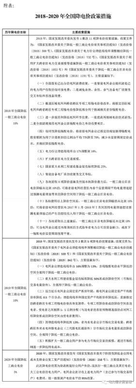 附表:2018-2020年全國(guó)降電價(jià)政策措施