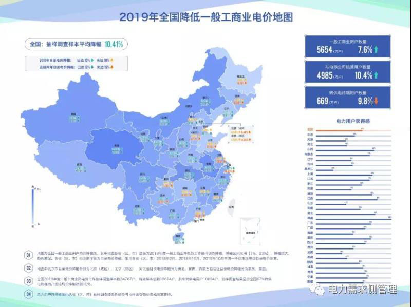 圖5 2019年全國(guó)降低一般工商業(yè)電價(jià)地圖