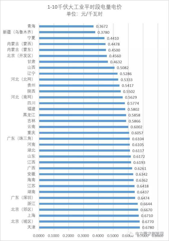 圖1 不滿1千伏一般工商業(yè)平時(shí)段電量電價(jià)