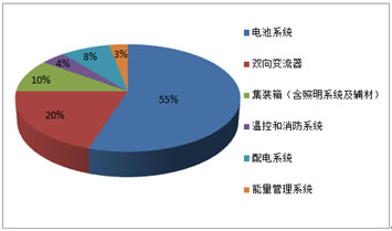 儲能行業(yè)發(fā)展過程中,更多人把希望寄托在降低儲能系統(tǒng)成本之上,認(rèn)為成本是影響儲能行業(yè)發(fā)展的最關(guān)鍵因素,而筆者雖然認(rèn)同適當(dāng)降低儲能系統(tǒng)成本有利于推動行業(yè)發(fā)展,但降低成本絕非最核心因素??v觀這些年儲能行業(yè)發(fā)展的歷程,以鋰離子電池儲能系統(tǒng)為例,系統(tǒng)的硬件物理成本快速下降,即使近至今年上半年,在風(fēng)電場配置儲能的應(yīng)用場景,短短幾個月時間里,中標(biāo)價格即由2.15元/Wh(PC價格)降至1.699元/Wh(EPC價格),降價之快降幅之大令人咋舌。雖然不排除受疫情這個特殊因素影響,個別企業(yè)舍利潤換取現(xiàn)金流,但整個儲能行業(yè)的降價趨勢由此可見一斑。讓我們以1C倍率集裝箱儲能系統(tǒng)為例來分析一下系統(tǒng)物理硬件成本比例,其成本分布大概如下餅狀圖。