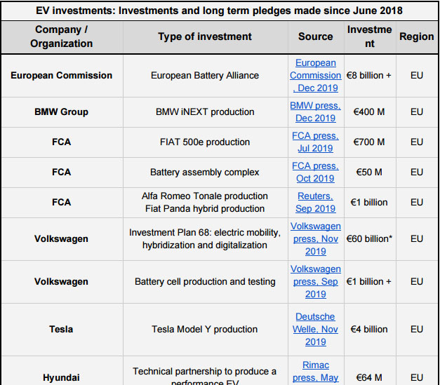 菲亞特克萊斯勒(FCA)2019年宣布在意大利投資17.5億歐元(約合人民幣137億元),用于生產(chǎn)其插混和純電動(dòng)車(chē)型,以及建設(shè)電池組裝廠。寶馬在德國(guó)丁格芬工廠投資4億歐元(約合人民幣31億元),以生產(chǎn)iNext。另外,西班牙從歐寶獲得了2.5億歐元(約合人民幣20億元),克羅地亞從現(xiàn)代和起亞獲得了8000萬(wàn)歐元(約合人民幣6億元)。