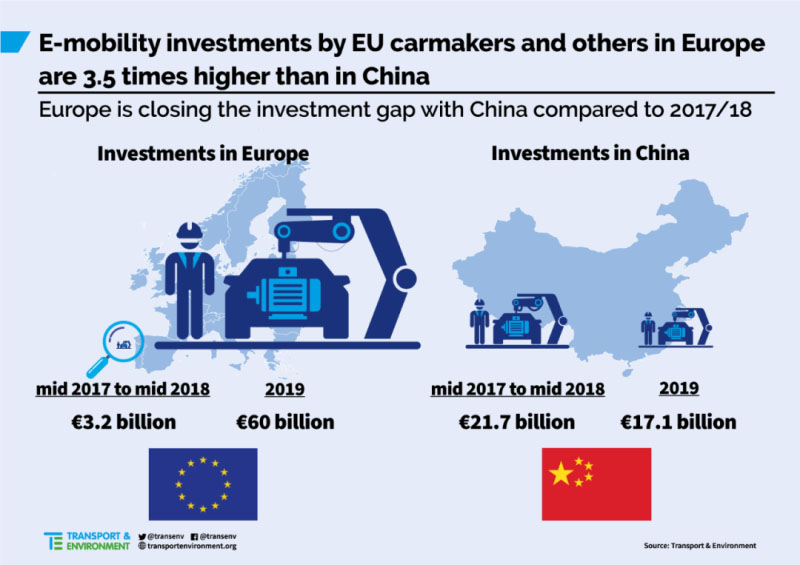 當(dāng)?shù)貢r(shí)間5月25日,總部位于布魯塞爾的歐洲非盈利組織——運(yùn)輸與環(huán)境(T&E)發(fā)布報(bào)告稱,2019年歐洲在電動(dòng)汽車(chē)領(lǐng)域的總投資額已經(jīng)超過(guò)中國(guó),達(dá)到了創(chuàng)紀(jì)錄的600億歐元(約合人民幣4671億元),較此前高出近20倍。