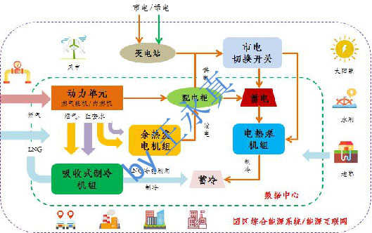(二)打造基于多能互補(bǔ)的數(shù)據(jù)中心能源供應(yīng)的多元融合模式。因地制宜,因時(shí)制宜,研究和推廣自建綠電、直購(gòu)綠電、采購(gòu)綠色電力證書以及電力現(xiàn)貨市場(chǎng)化交易等方式在數(shù)據(jù)中心供能上的應(yīng)用。積極倡導(dǎo)高壓直流供電技術(shù)在數(shù)據(jù)中心的推廣示范,提高綠電供應(yīng)的可靠性、降低綠電供應(yīng)的投資運(yùn)維成本,全方位培育綠電在數(shù)據(jù)中心的應(yīng)用路徑。架構(gòu)基于能量綜合梯級(jí)利用的聯(lián)供系統(tǒng)的設(shè)計(jì)及評(píng)價(jià)體系,特別是電力緊張區(qū)域,優(yōu)化數(shù)據(jù)中心天然氣的市場(chǎng)供應(yīng)價(jià)格及天然氣管道配氣費(fèi),合理設(shè)計(jì)天然氣聯(lián)供系統(tǒng)在數(shù)據(jù)中心能源系統(tǒng)的容量占比及運(yùn)行策略。應(yīng)充分結(jié)合自然或免費(fèi)冷源,因地制宜,鼓勵(lì)利用LNG汽化吸熱過程、山區(qū)溶洞低溫空氣、江河湖海低溫水源等用于滿足數(shù)據(jù)中心散熱需求的應(yīng)用及示范。應(yīng)立足數(shù)據(jù)中心當(dāng)?shù)刭Y源稟賦及負(fù)荷特性,構(gòu)建綠色電力、天然氣聯(lián)供、自然冷源以及光熱、儲(chǔ)能等技術(shù)的數(shù)據(jù)中心多能互補(bǔ)能源系統(tǒng),推動(dòng)綠電與其他能源在數(shù)據(jù)中心供能上的多元互動(dòng)的潛力及方式。